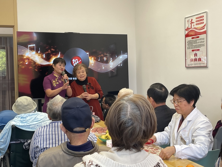 “薄雾浓云愁永昼,瑞脑消金兽……”一首婉约的《醉花阴》朗诵,将现场带入宁静高远的意境。院长盛忠贤介绍,重阳节自带一种对时光与生命的哲思,这与中医“形神一体、情志共调”的健康观高度契合。“通过欣赏诗词、聆听沪剧,让老人们情志舒畅,本身就是一帖‘开心散’,有助于肝气调达,气血和畅。”